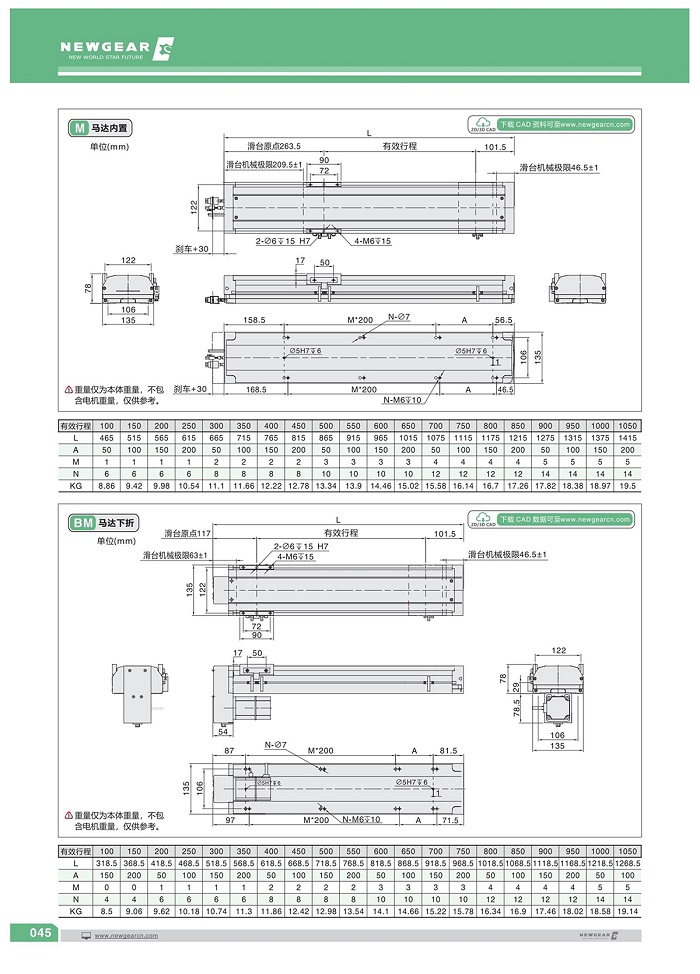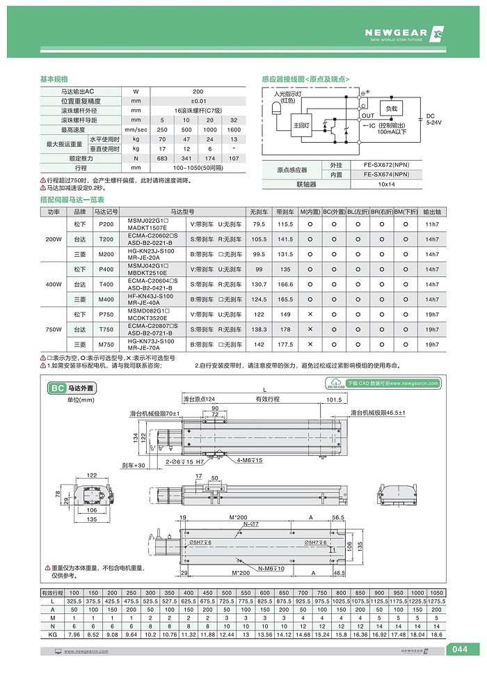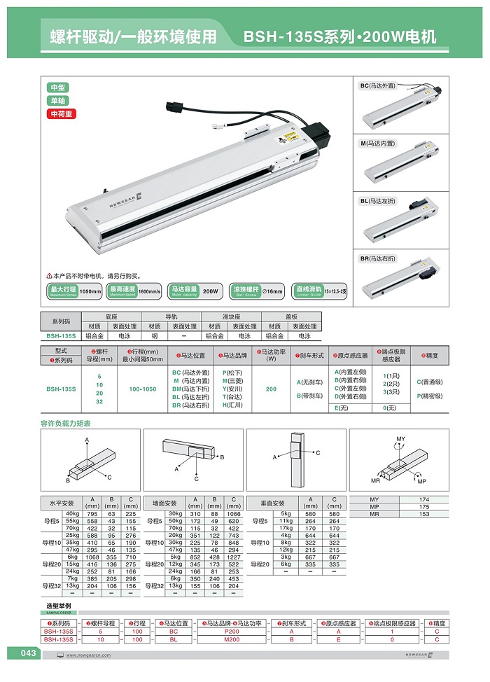 直線模組BSH-135S系列·200W電機