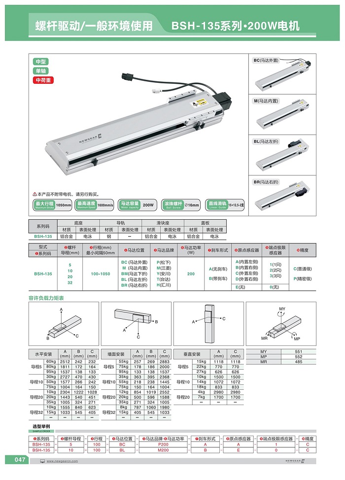 六、馬達(dá)安裝位置:多方向馬達(dá)安裝位置可供選擇,讓機(jī)臺設(shè)計(jì)更有彈性。Bc(馬達(dá)外置)BL(馬達(dá)左折) BR(馬達(dá)右折) BM(馬達(dá)下折) M(馬達(dá)內(nèi)置)